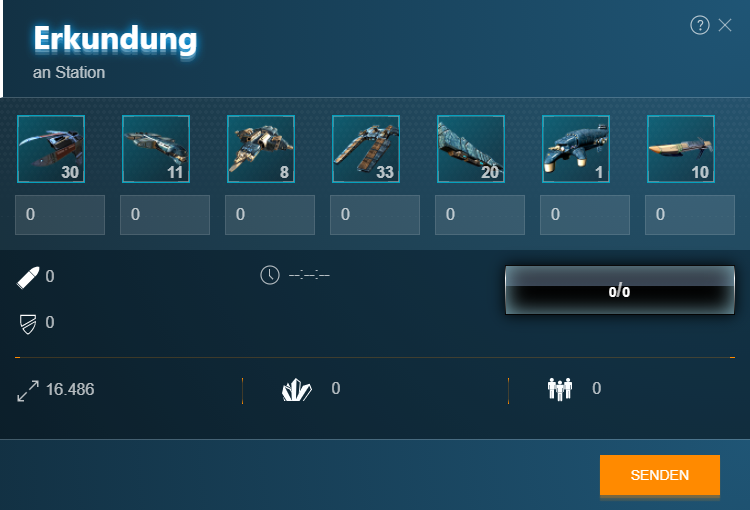 Im nun geöffneten Fenster kann die Art und Anzahl der Einheiten gewählt werden, die zum Objekt entsendet werden sollen.