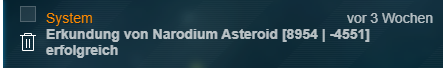 Report kann die Position des angeflogenen Objektes, die geborgenen Rohstoffe sowie die auf dem Objekt verbliebenen Rohstoffe entnommen werden.