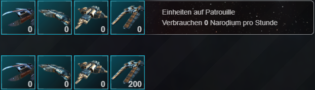 Wenn Einheiten auf Patrouille geschickt oder wieder zurückbeordert werden sollen, zieht man den gewünschten Schiffstyp per "Drag & Drop" von der unteren Zeile in die Obere, um den Start einzuleiten bzw. von oben nach unten, um die Einheiten zurückzuziehen.