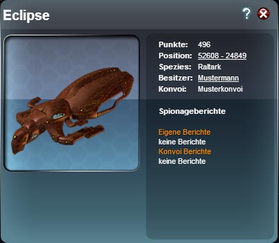Spionageberichte zu diesem Schiff aufgerufen werden. Angezeigt werden die letzten 5 Berichte.