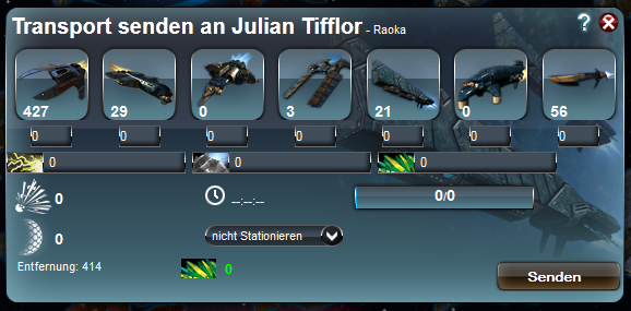 Art und Anzahl der Einheiten gewählt werden, die zum Ziel entsandt werden sollen, indem die gewünschte Anzahl eines Typen in das Zahlenfeld unterhalb des Bildes des entsprechenden Typen eingegeben wird.